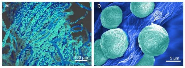 在一張放大了3200倍的掃描電子顯微鏡圖中,一根根普通的棉纖維上,均勻地分布著毛線球狀的納米沸石顆粒,這些牢牢結(jié)合在棉纖維上的顆粒正是快速殺滅新冠病毒的頂級殺手。